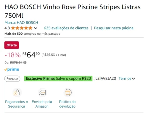 [ PRIME | App ] Vinho Rose Piscine Stripes Listras 750Ml