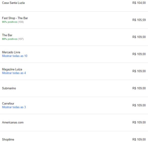 No site do Google consta que o produto está por R$75 no Extra, porém consta como sem estoque.