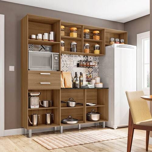 - O kit vem com 5 portas de bater, 2 gavetas com corrediças metálicas deslizantes e 2 espaçosas prateleiras;