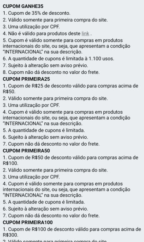 [Primeira Compra] Cupom de 35% off para compras internacionais