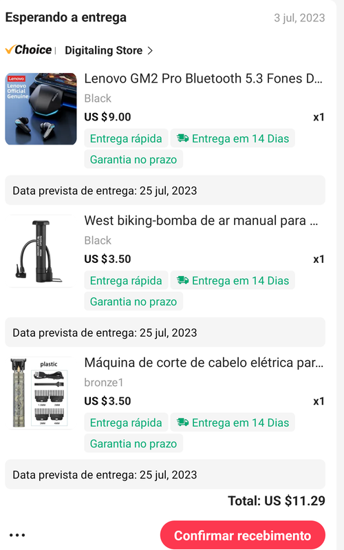O meu ... Acredito que saia da China até segunda. Espero passar sem taxa, ainda mais que foi no "choise" com 3 produtos... Ficou tudo R$ 55,08.