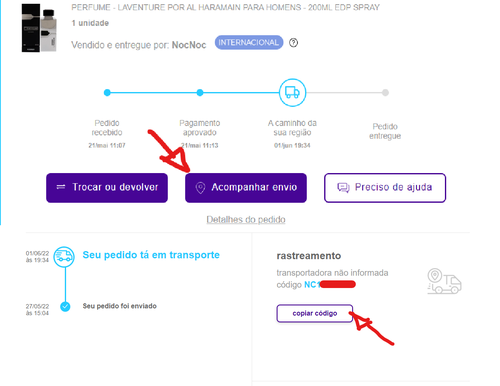 Após feito isso, acessa esse link: nocnoc | Do mundo para sua casa (...asa (nocnocbrasil.com) e cola o código. Bingo!