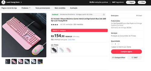 O teclado é bacana, mas o mouse é fraco. Comprei esse mesmo kit no ML por esse preço aqui no Brasil