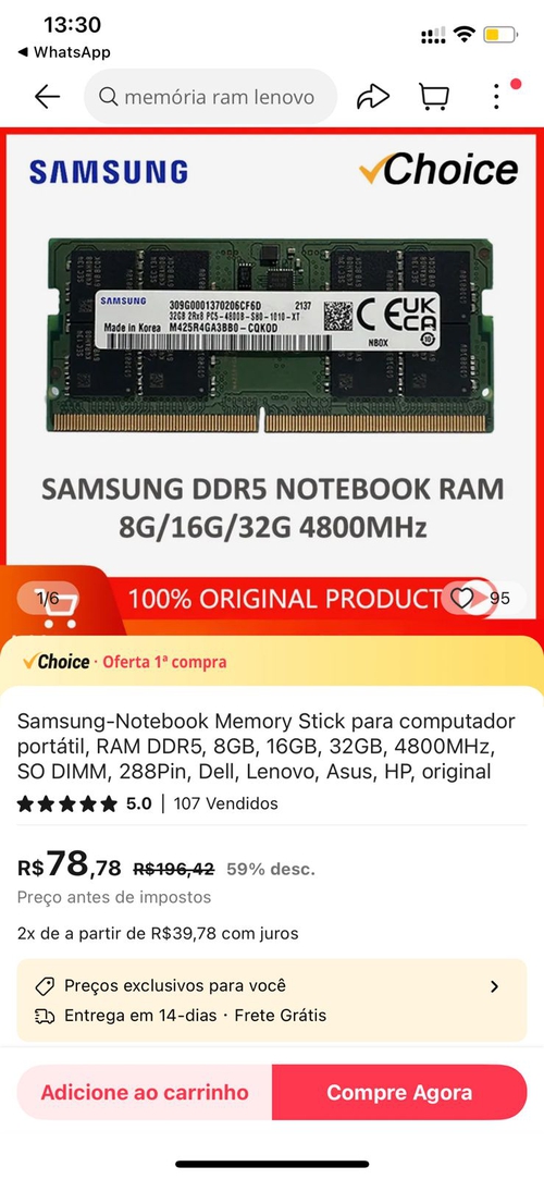 Resultado, pra não receber notebook novo semana q vem e ficar 2 meses passando raiva com ele rodando com 8gb apenas, preferi ir no ML