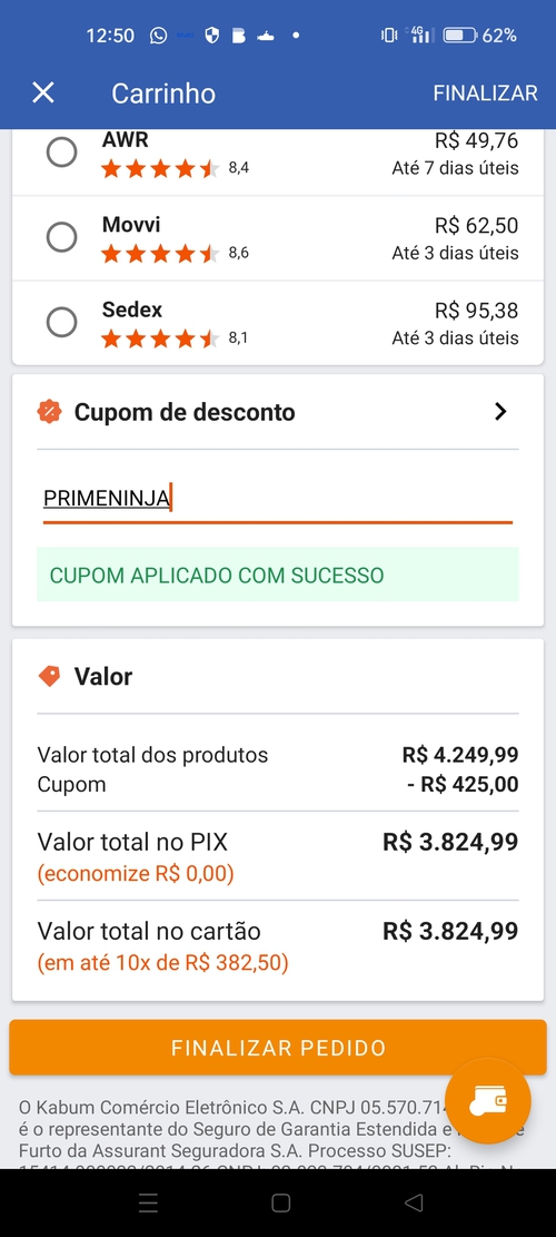 Prime ninja R$233 + 3824 = R$4057. Epic fail.
