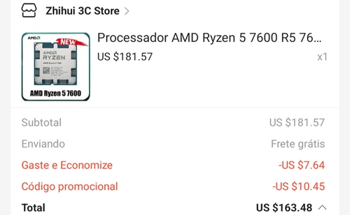 Processador AMD Ryzen 5 7600, 5.1GHz Max Turbo, Cache 38MB, AM5, 6 Núcleos, Vídeo Integrado - 100-100001015BOX