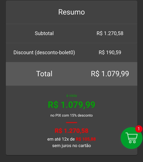 Não estou conseguindo chegar nesse preço. Fica 1079.