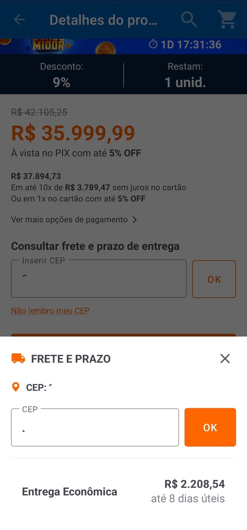 O frete que me quebrou R$2.182,96 pro ES, deve ter uns 20kg KKK