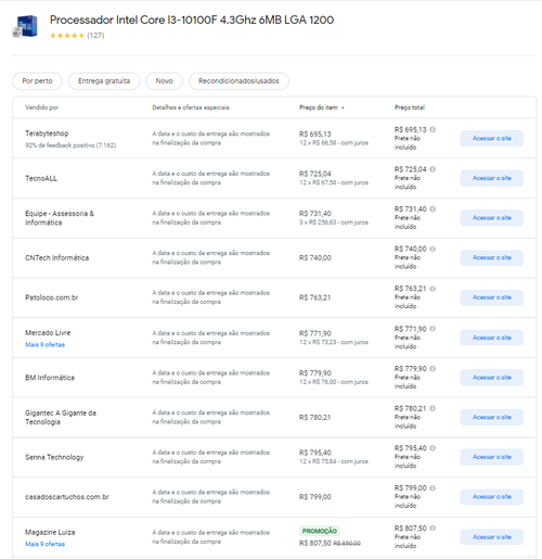 Menor preço segundo o Google Shopping
