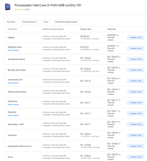 Menor preço segundo o Google Shopping