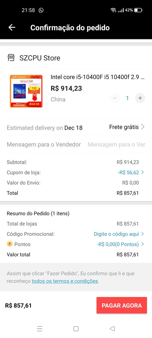 Qual cupom?