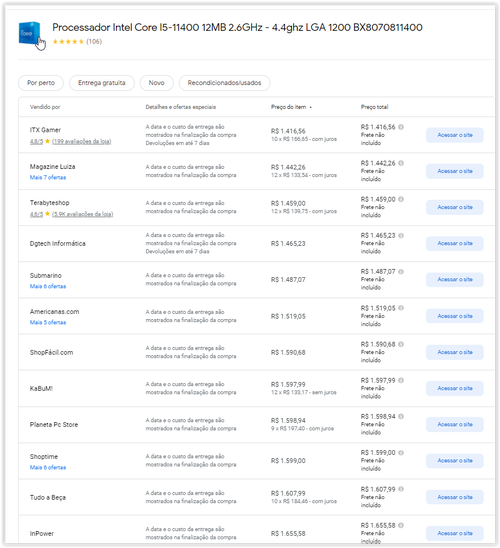 Menor preço segundo o Google Shopping