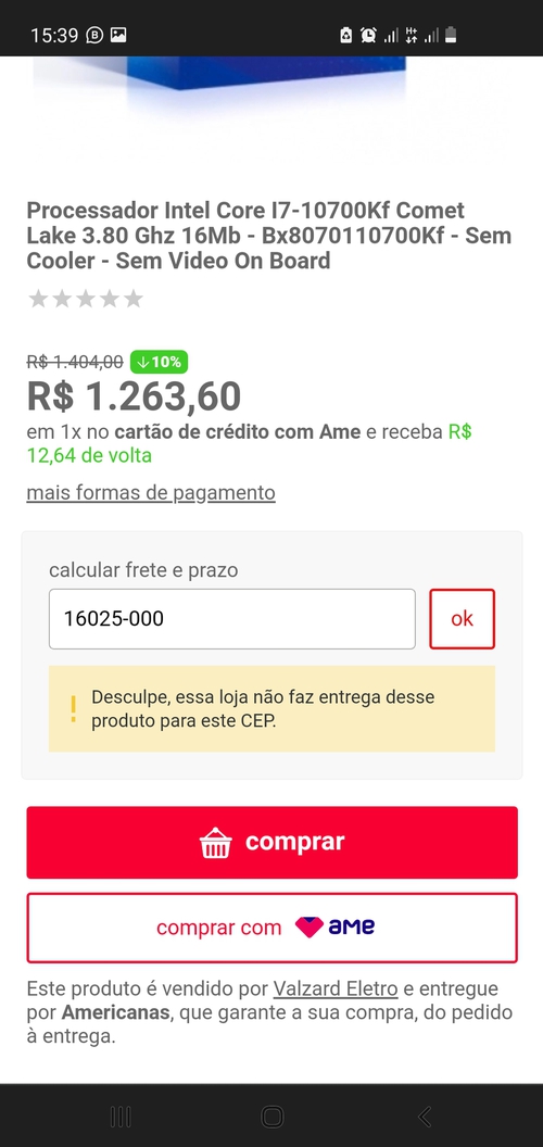 Não entrega no meu CEP