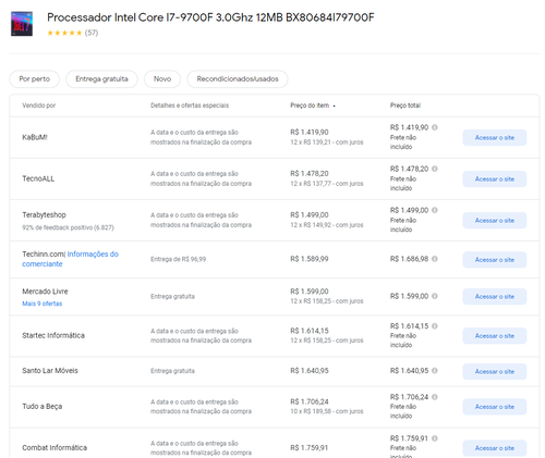 Menor preço segundo o Google Shopping