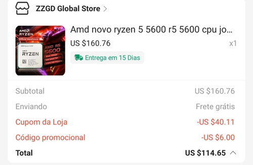 Esse cupom aplicou também nesse Ryzen 7 5700X abaixo, mas ficou R$969,91 (cupom FebIC6 + boleto), achei caro ainda KKK.