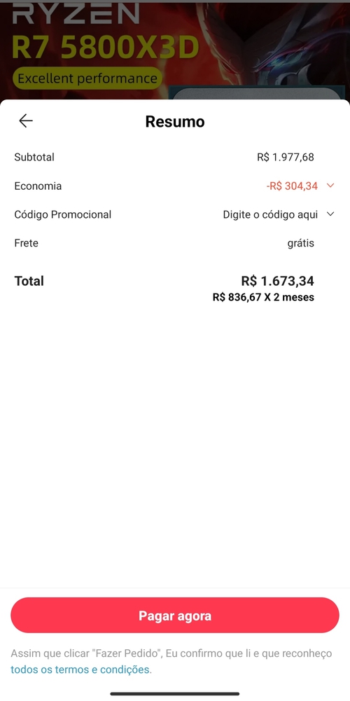 Só parcela em 2x sem juros... O aliexpress ficando cada vez mais mediocre... Mas o preço a vista sai 1585 ta muito bom