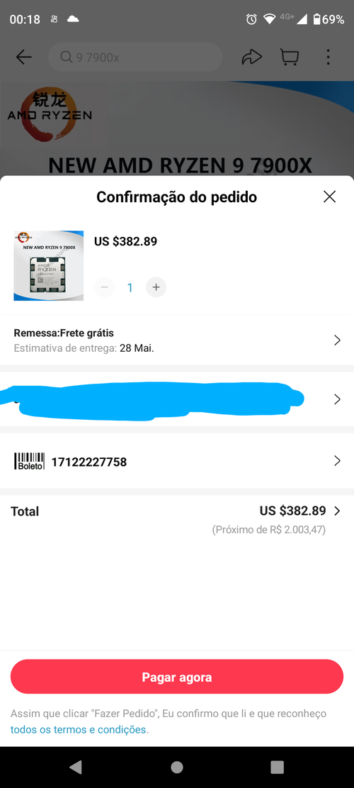 Se eu não conseguir comprar esse vou tentar o " AMD Ryzen 7 7700X AM5 5.4GHz 40MB".