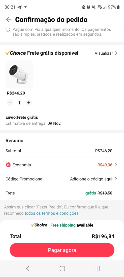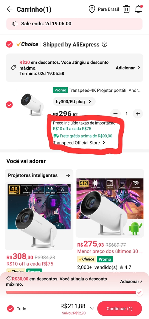 Eu abri o APP do Aliexpress e apareceu uma mensagem que os produtos "Choice" já estão com taxa inclusa no preço final. Se por algum motivo taxar, só pedir reembolso. Eu peguei esse projetor na última promoção por esse valor e tive sorte na loteria, passou direto na receita.