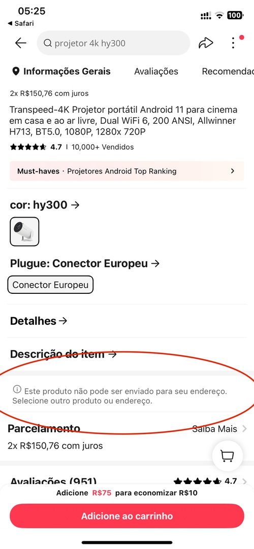 Pra mim aparece que não pode ser enviado pro meu endereço. Não entendi nada.