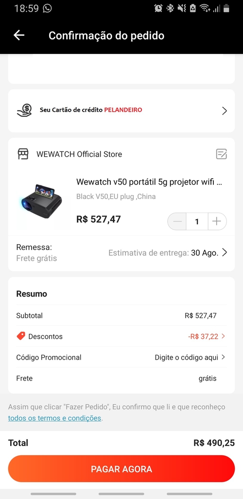Com o cupom WATCHV50HR (-R$27,21) e moedas 92 Aliexpress (-R$10,01) com um desconto total de -R$37,22, só consegue esse valor direto pelo app