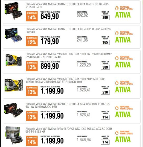 Promo. de Placas de Video Nvidia na Kabum varios modelos.