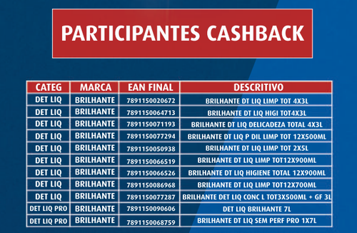 Não ficou claro. O cash é só de um produto? No caso sabao líquido?