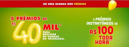 Premiação instantânea: são milhares de vales presentes da Americanas.com, no valor unitário de R$ 100,00 (cem reais).O vale presente será entregue via e-mail e poderá ser usado como desconto em compras no site Americanas.com.Sorteios: Serão sorteados 5 (cinco) certificados de ouro no valor unitário de R$ 40.000,00 (quarenta mil reais).