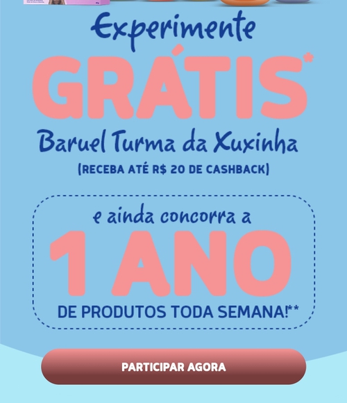 Promoção Xuxinha - Receba até R$20 de cashback comprando produtos Baruel Turma da Xuxinha