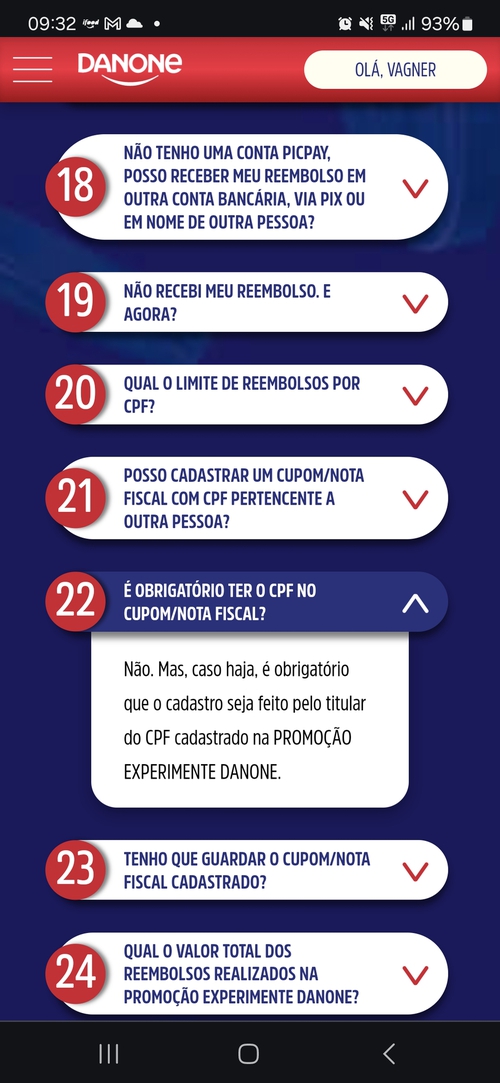 Ola, boa noite, estou participando da promoção DANONE de reecer ate 20 reais de CashBack. Recebi o e-mail dizendo que meu cupom foi reprovado. Com a seguinte mensagem: