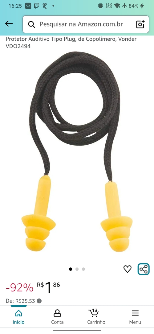 Protetor Auditivo Tipo Plug, de Copolímero, Vonder VDO2494