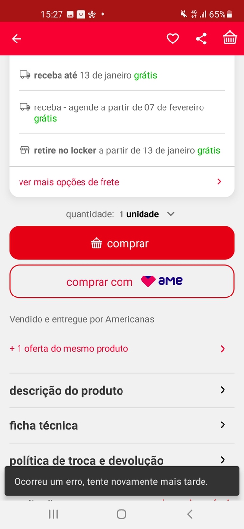 Tva dando erro, reinstalei o app comprei e a Americanas cancelou meu pedido