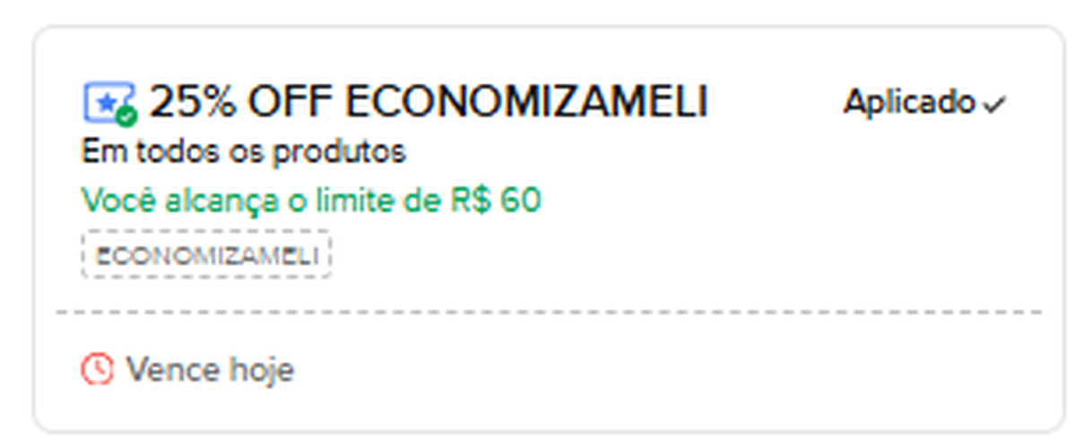 cupom ECONOMIZAMELI de R$ 60,00 reais de desconto