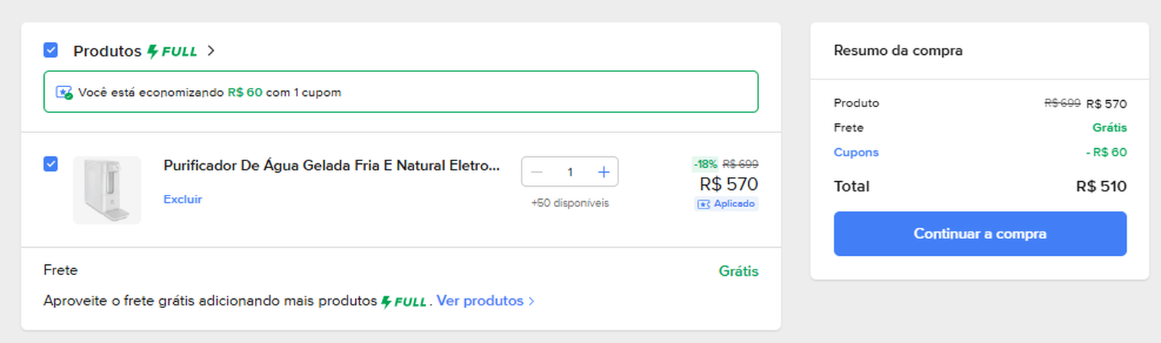 Po. Precisando comprar um purificador de água e mesa black não vi nenhuma oportunidade boa
