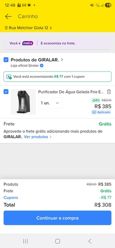 aplique o cupom na página pra chegar no valor