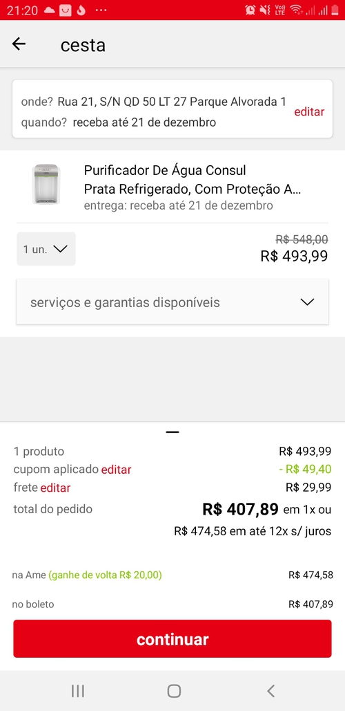 Com cupom oba10 + ame sai a 388,00