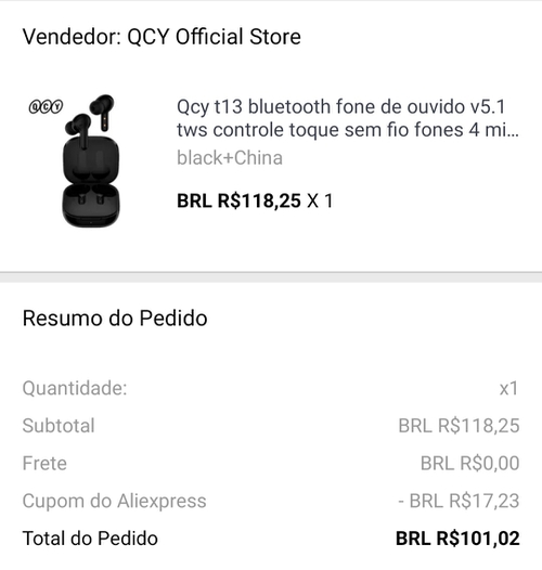 Para novos usuários que usem o cupom de desconto "pelandon8", o fone estará saindo por apenas R$70,56.