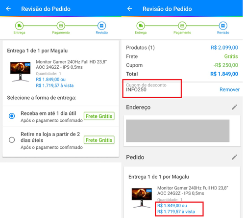 Aqui o cupom não funciona e o preço tá R$ 1.952,07 à vista