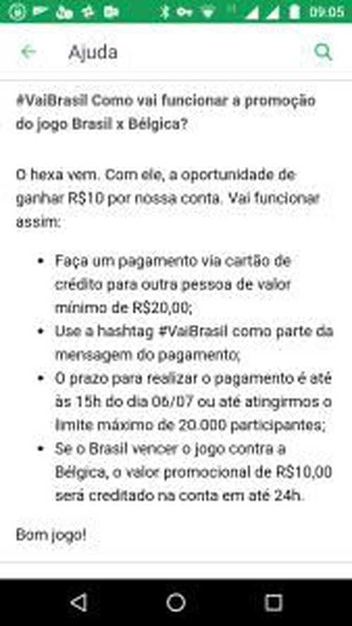 R$10,00 OFF se o Brasil vencer o jogo contra a Bélgica