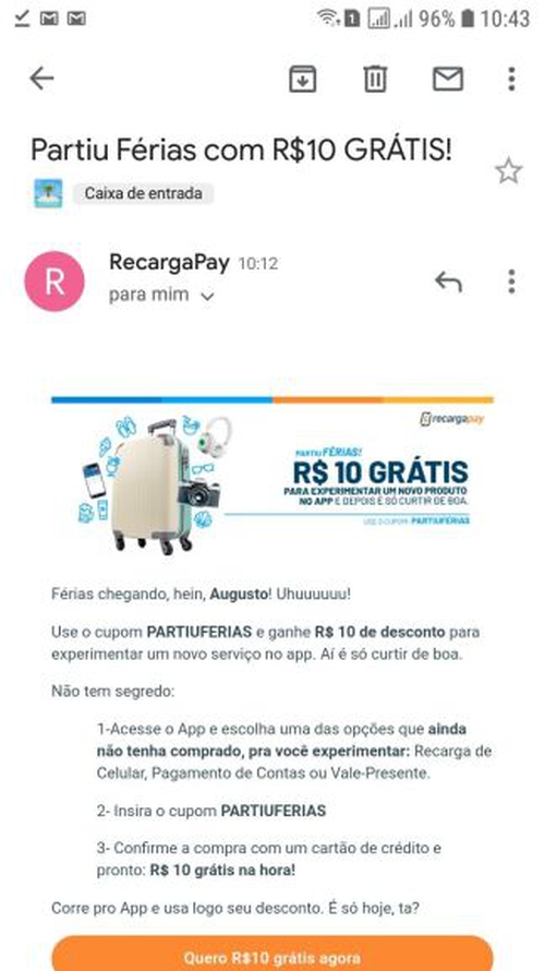 R$10 no Recarga Pay para serviços ainda não utilizados