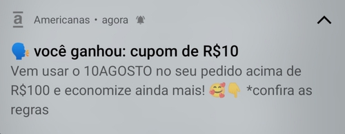 R$10 OFF acima de R$100 na Americanas