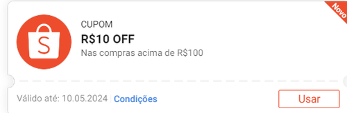R$10 OFF em compra mínima de R$100 com cupom Shopee