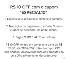 R$ 10 OFF na Loja Oficial da Hering | Mercado Livre