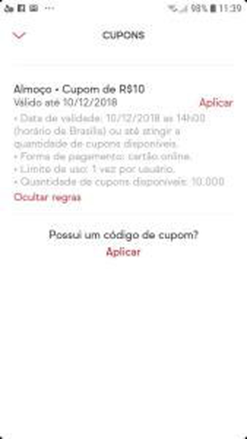 Ifood me decepcionou, não recebi esse cupom :(