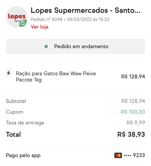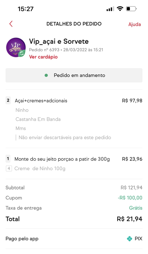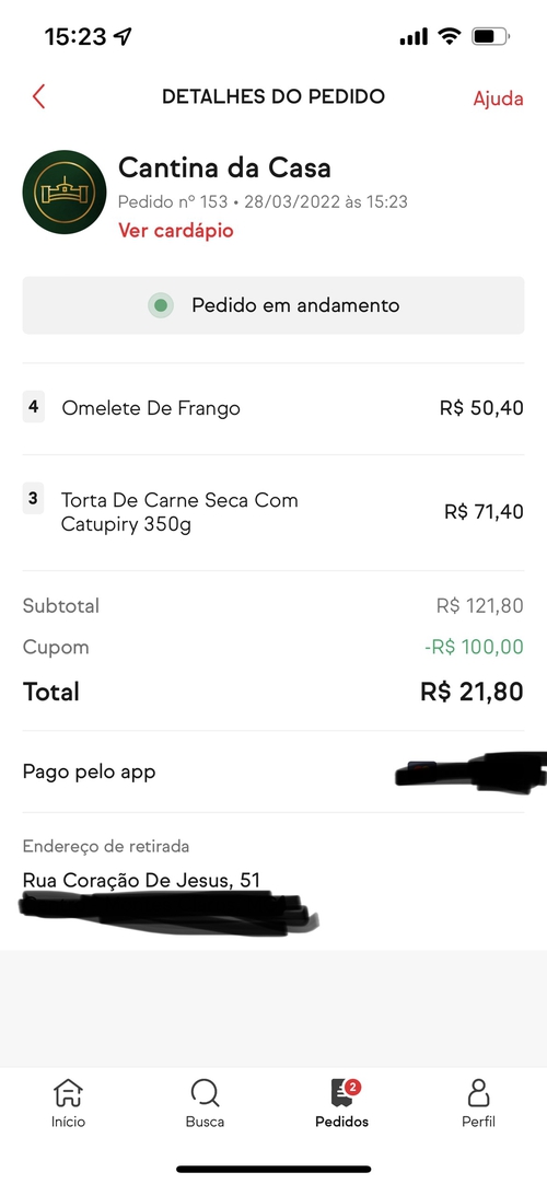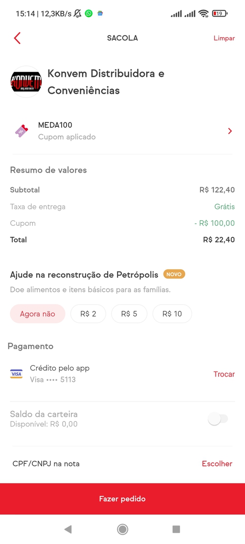 Cupom utilizado com sucesso, infelizmente o restaurante cancelou 🤡🤡