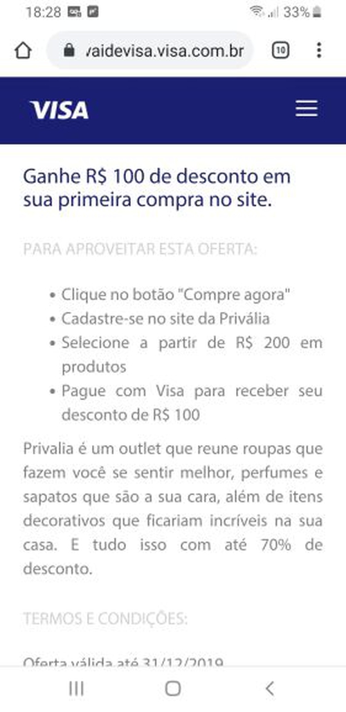 R$100 OFF em Compras acima de R$200 na Privália com Vai de Visa