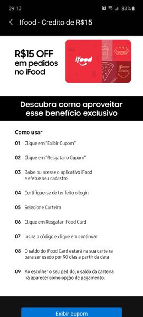 Para resgatar o cupom deve-se ter instalado o app Samsung Members no aparelho e ter uma conta Samsung registrado no aparelho.