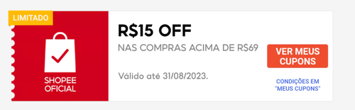 R$15 OFF nas compras acima de R$69 com cupom Shopee Oficial