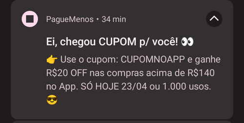 R$20 de desconto em compras acima de R$140,00 - PAGUE MENOS