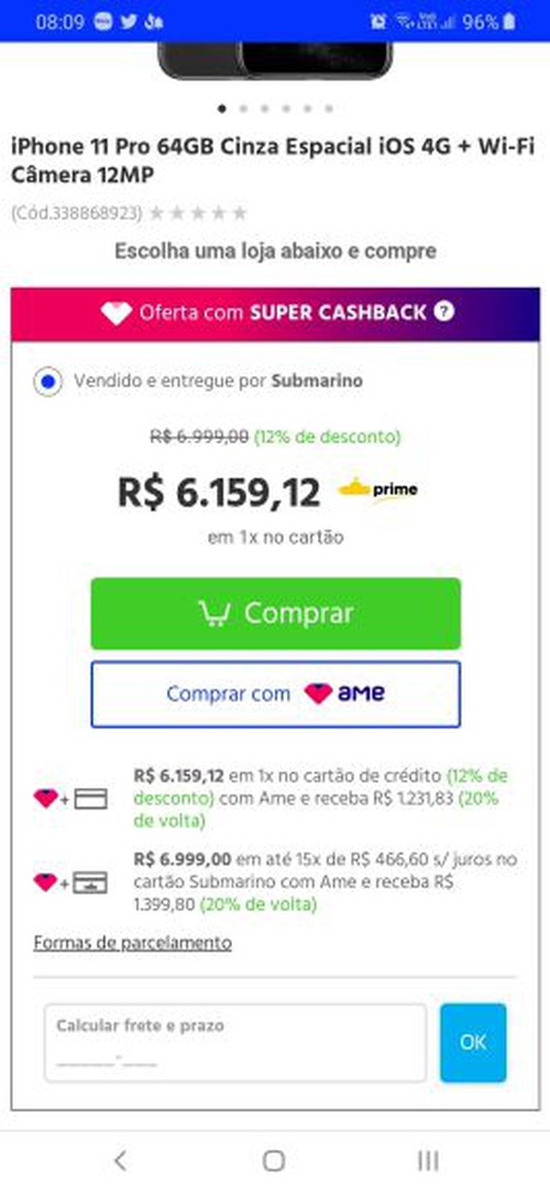 [R$: 4.937 AME] iPhone 11 Pro 64GB Cinza Espacial