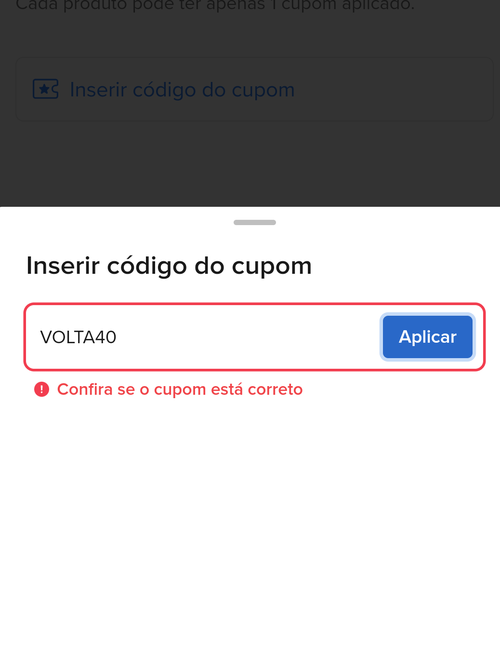 Confira se o cupom está correto